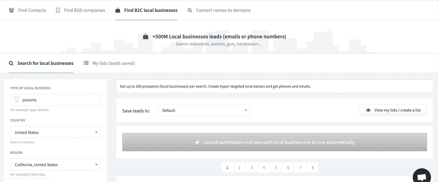 Fill in missing lead data instantly.- Upload a list of domains and uncover verified emails